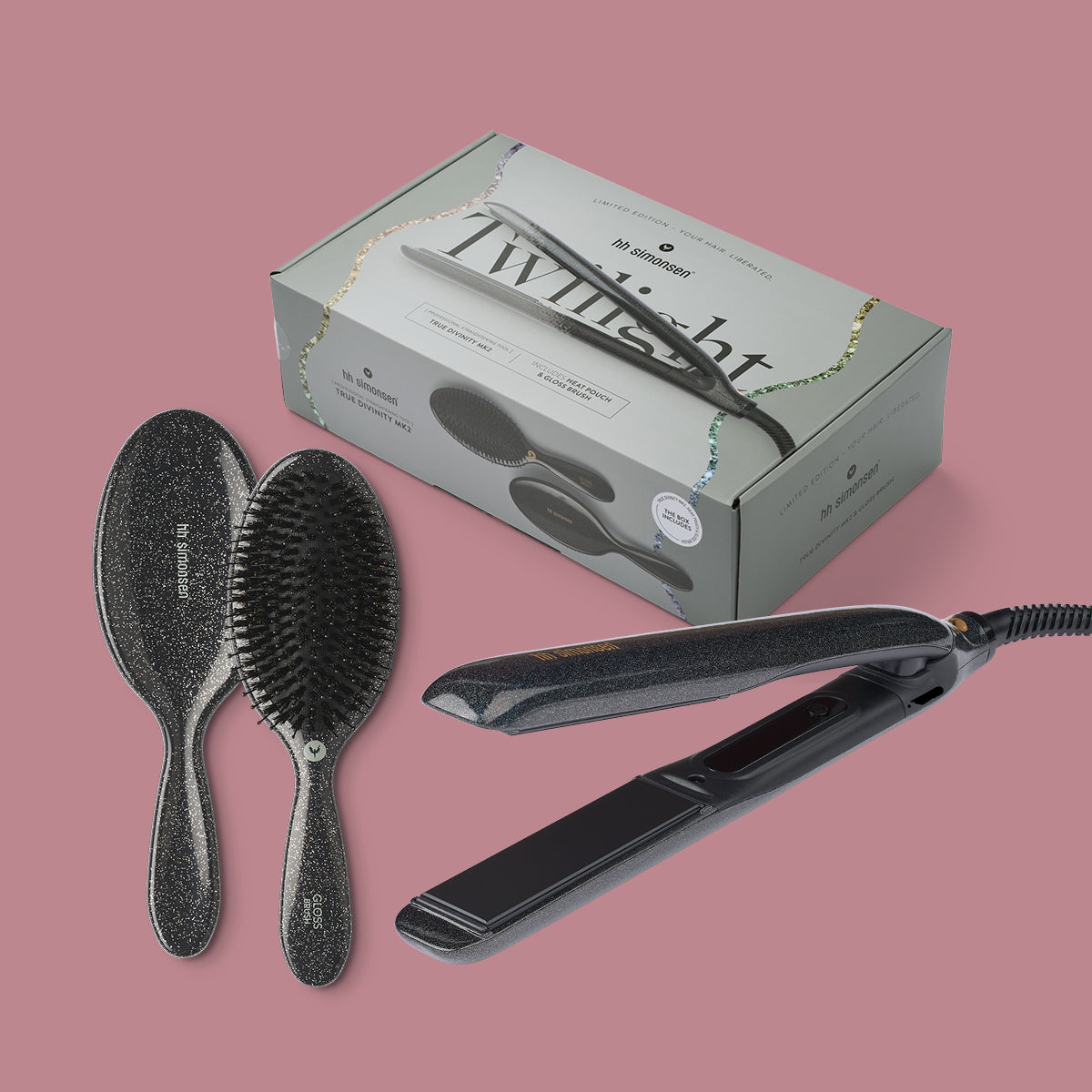 LTD EDITION HH Simonsen Twilight -muotoilurauta + Gloss -hiusharja